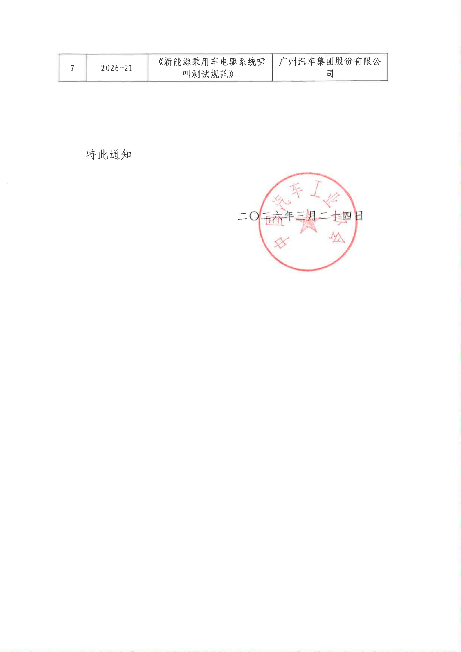 中国汽车工业协会关于发布2026年第一批团体标准的通知