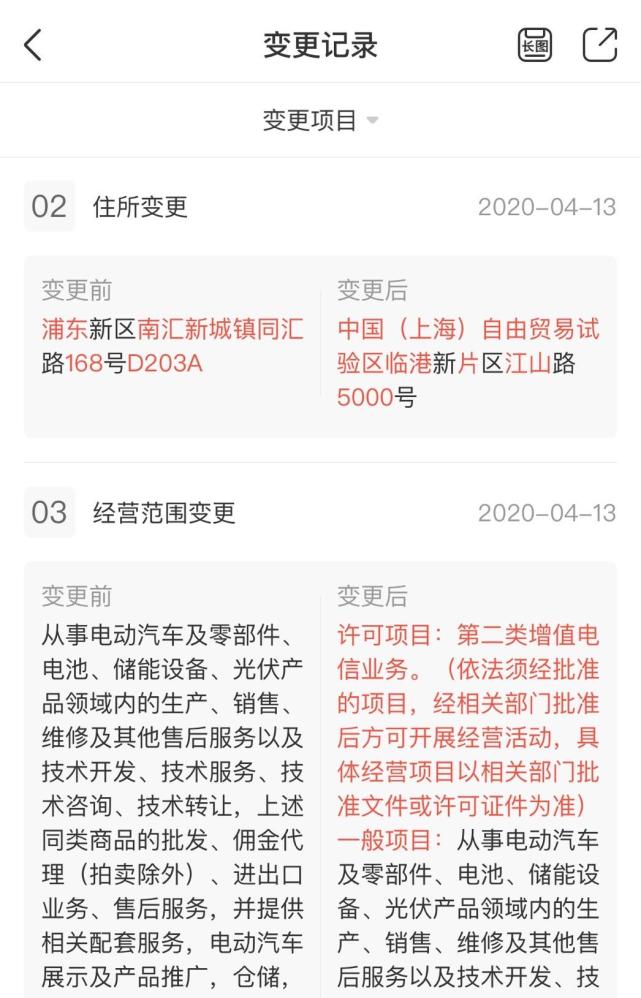 4月13日,特斯拉中国的运营主体特斯拉(上海)有限公司发生了工商变更。