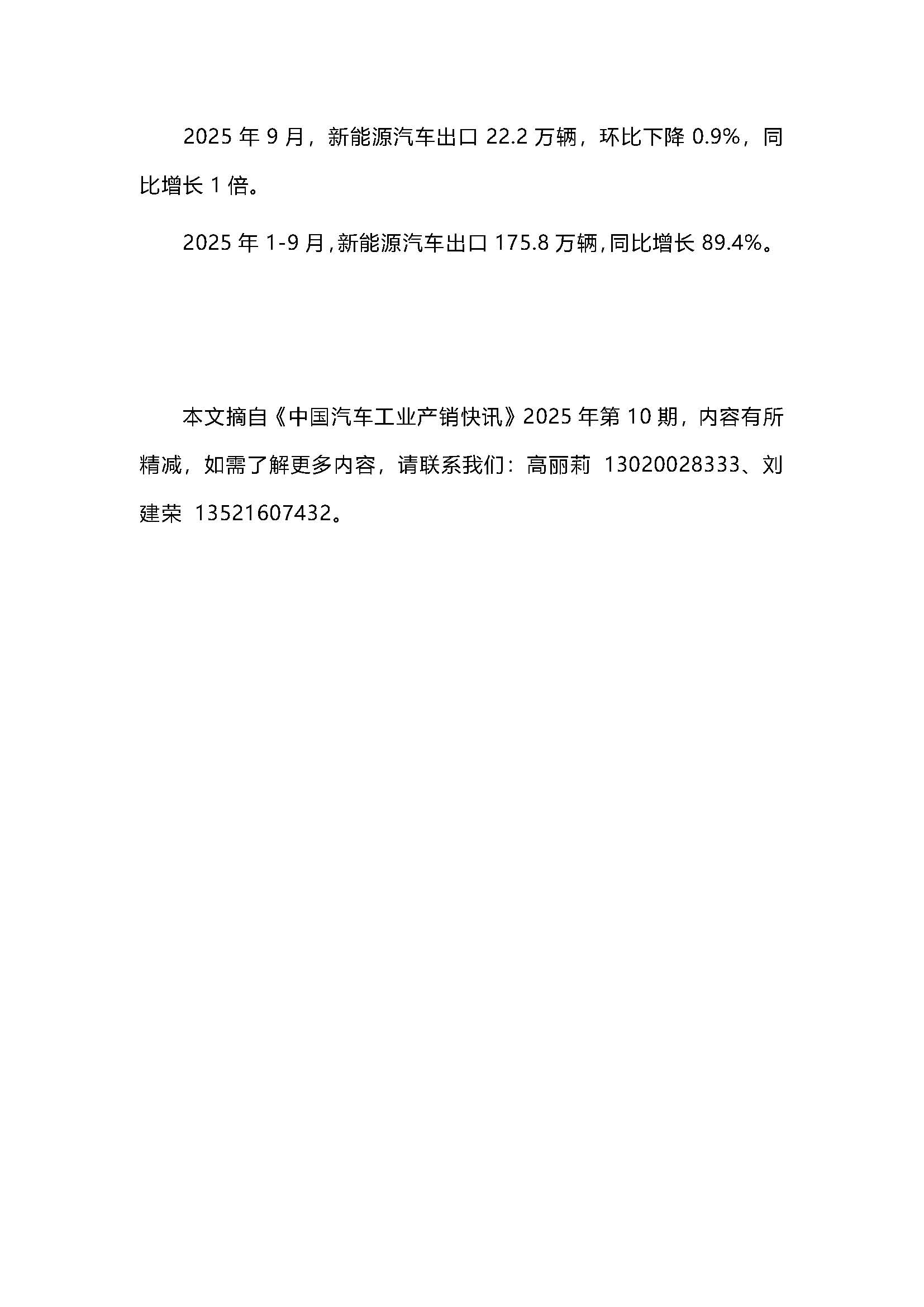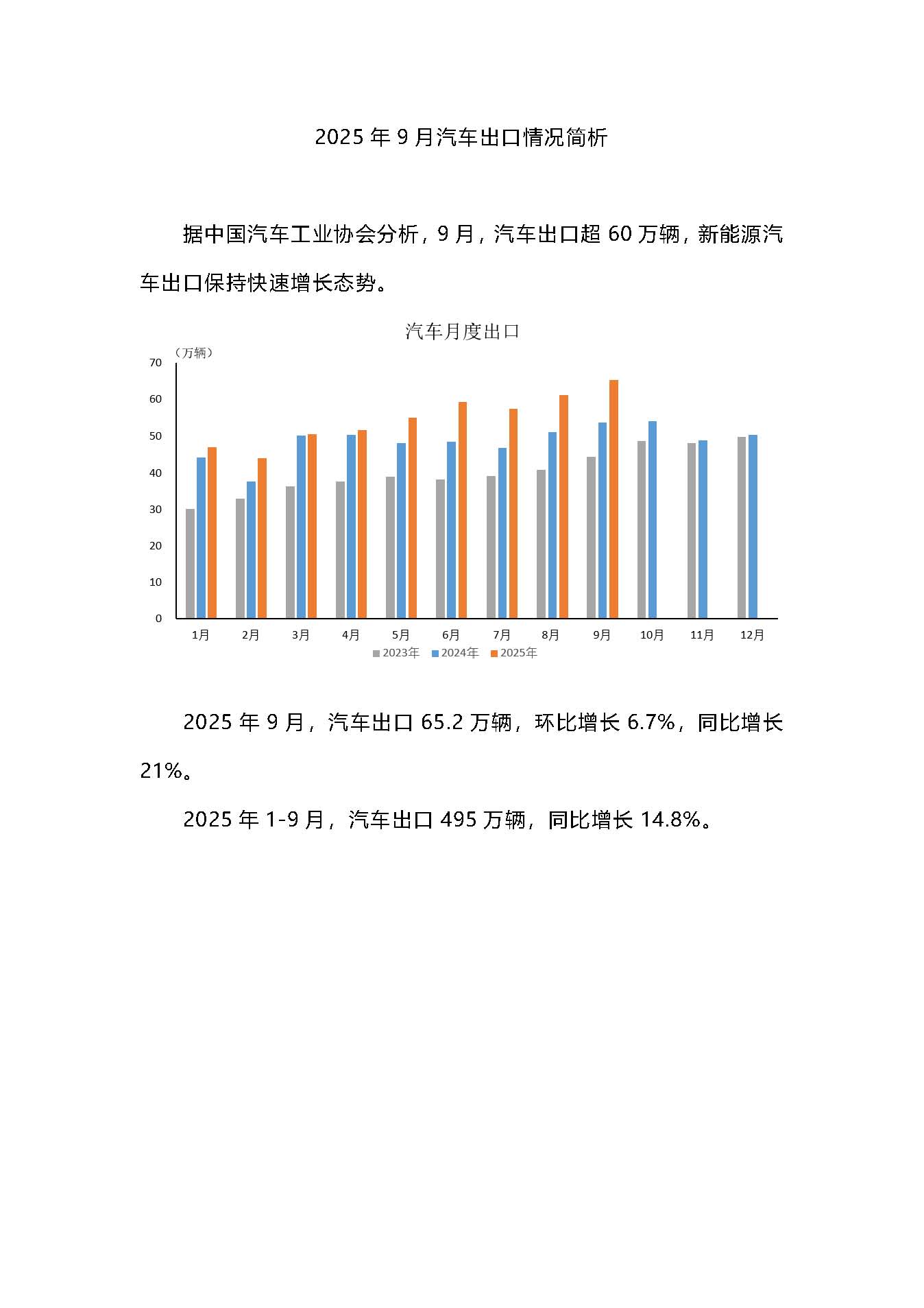 2025年9月汽车出口情况简析