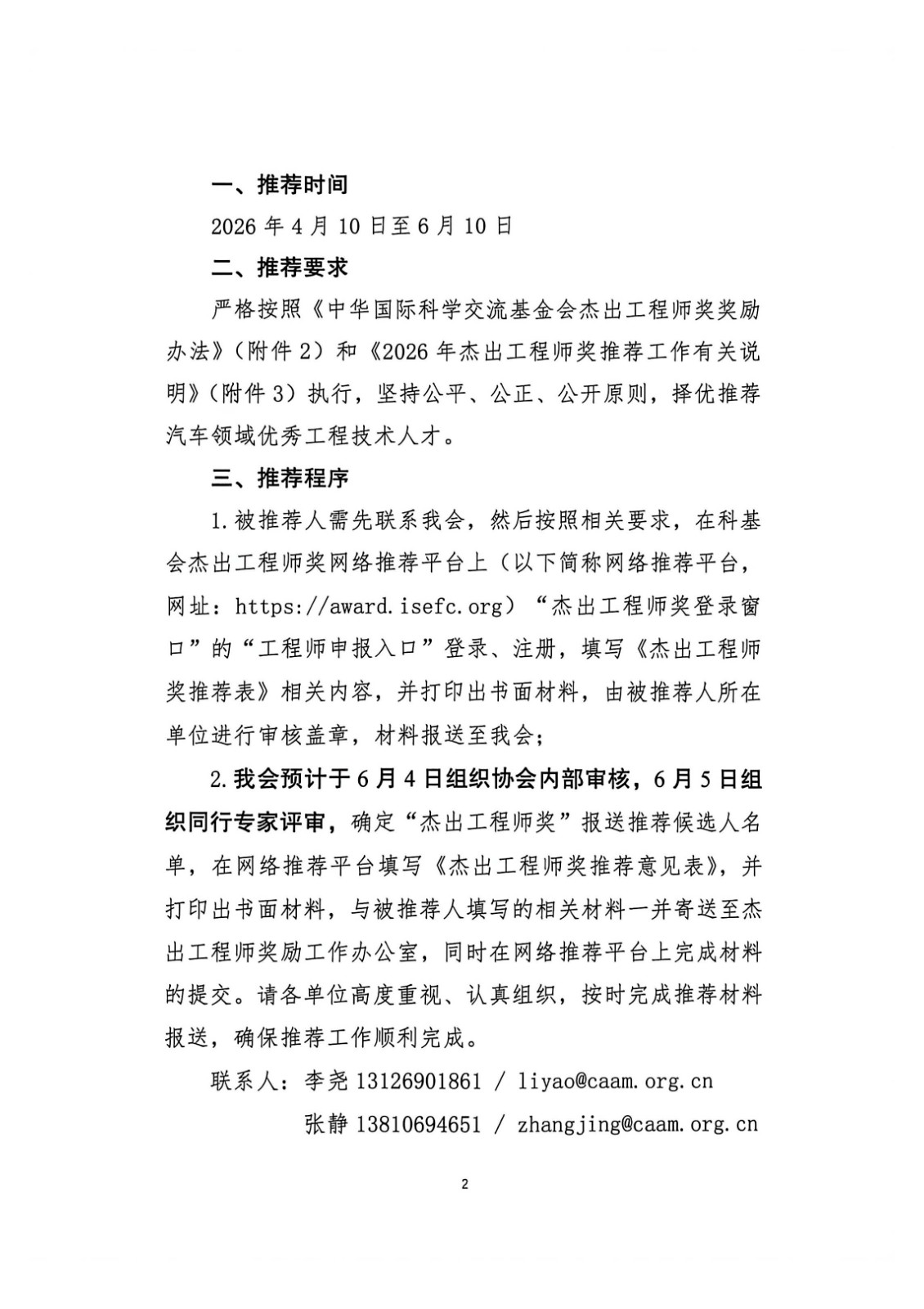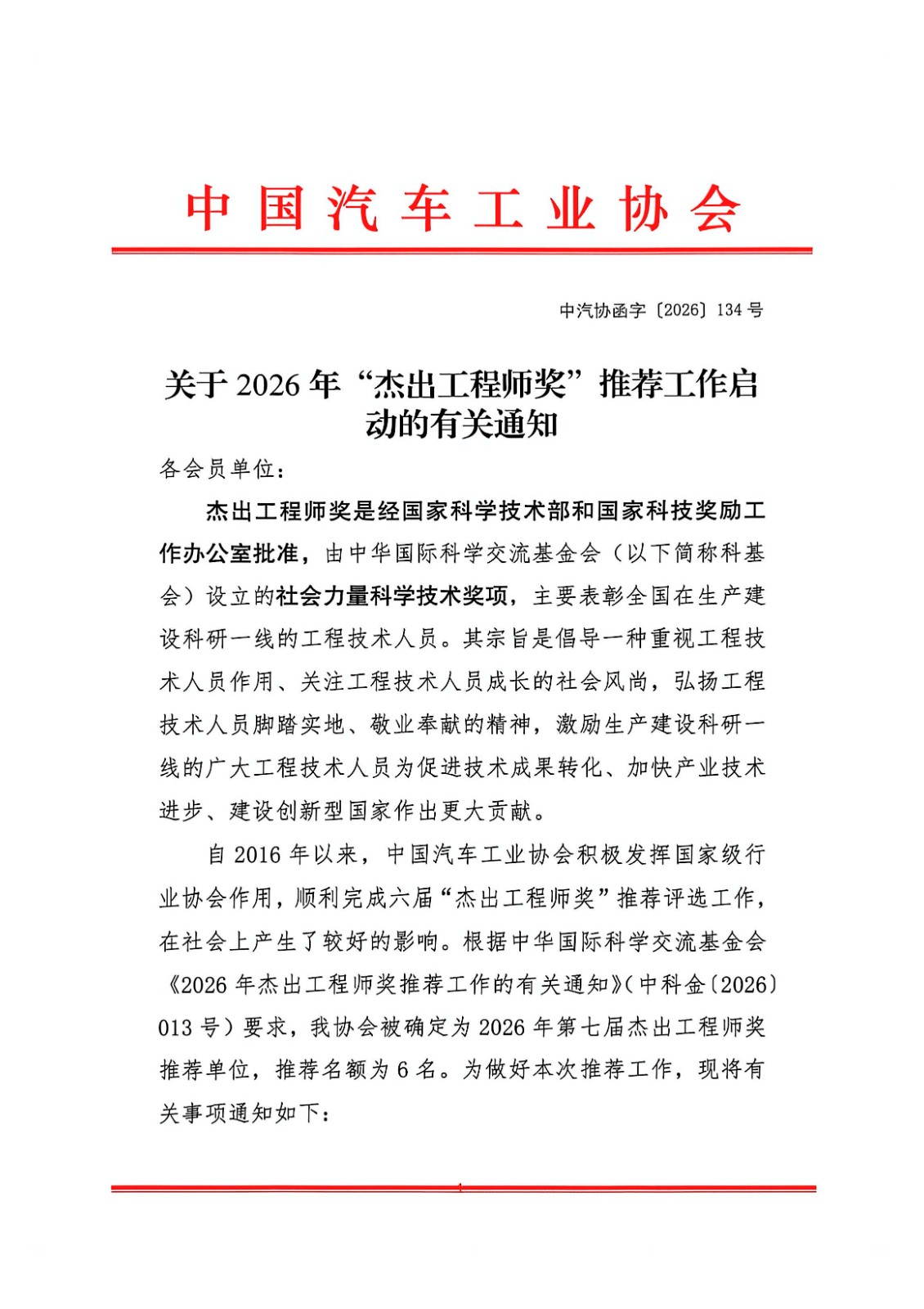 关于2026“杰出工程师奖”推荐工作启动的有关通知