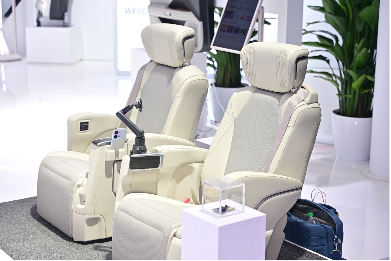 在“和鸣共创”展示区,丰田纺织依托“安全、环境、舒适”的核心理念,持续推动智能座舱技术创新,推出了多项融合人性化关怀与前沿科技的解决方案。