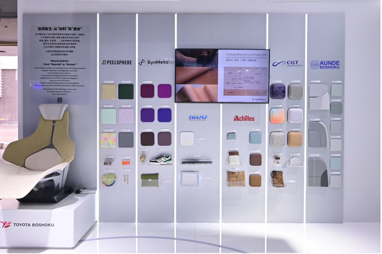 在今年的北京车展上,丰田纺织带来了近年来在移动空间研发、量产产品方面的最新产品和技术,围绕四大主题进行展示,包括全球智研、量产瑧品、和鸣共创和可持续未来。