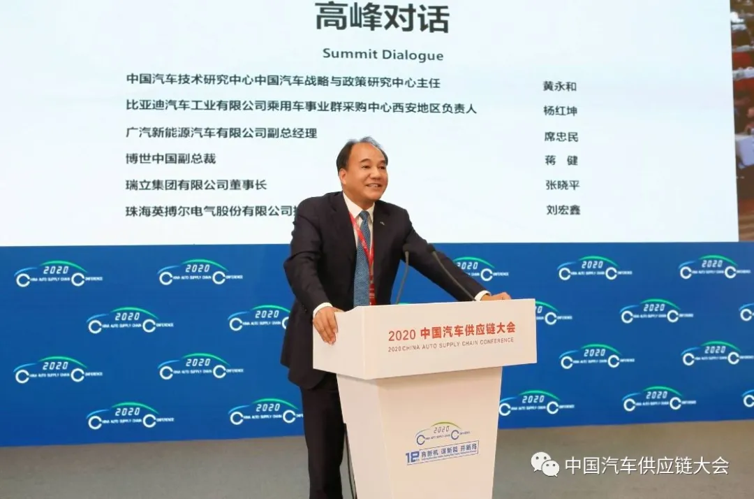 在大会论坛上,还专门设置了高峰对话环节,对话由中国汽车工业协会总工程师、副秘书长叶盛基主持,中国汽车技术研究中心中国汽车战略与政策研究中心主任黄永和、广汽新能源汽车有限公司副总经理席忠民、比亚迪汽车工业有限公司乘用车事业群采购中心西安地区负责人杨红坤、博世中国副总裁蒋健、瑞立集团有限公司董事长张晓平、珠海英搏尔电气股份有限公司技术总监刘宏鑫等行业机构与整车及零部件企业负责人一起,探讨全球产业重构背景下汽车产业链创新链如何打造,以及“后疫情”时期汽车供应链发展机遇与挑战。
